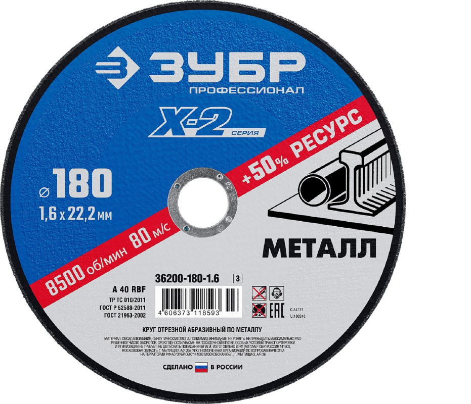 Отрезной круг ЗУБР по металлуПредназначен для УШМ (болгарка). Обеспечивает аккуратный и точный рез металлических конструкций и заготовок.