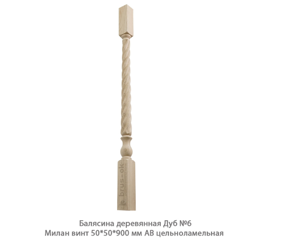 Балясина деревянная Дуб АВ сращенная / №6 Милан винт (50 * 50 * 900 мм / упак.10 шт)