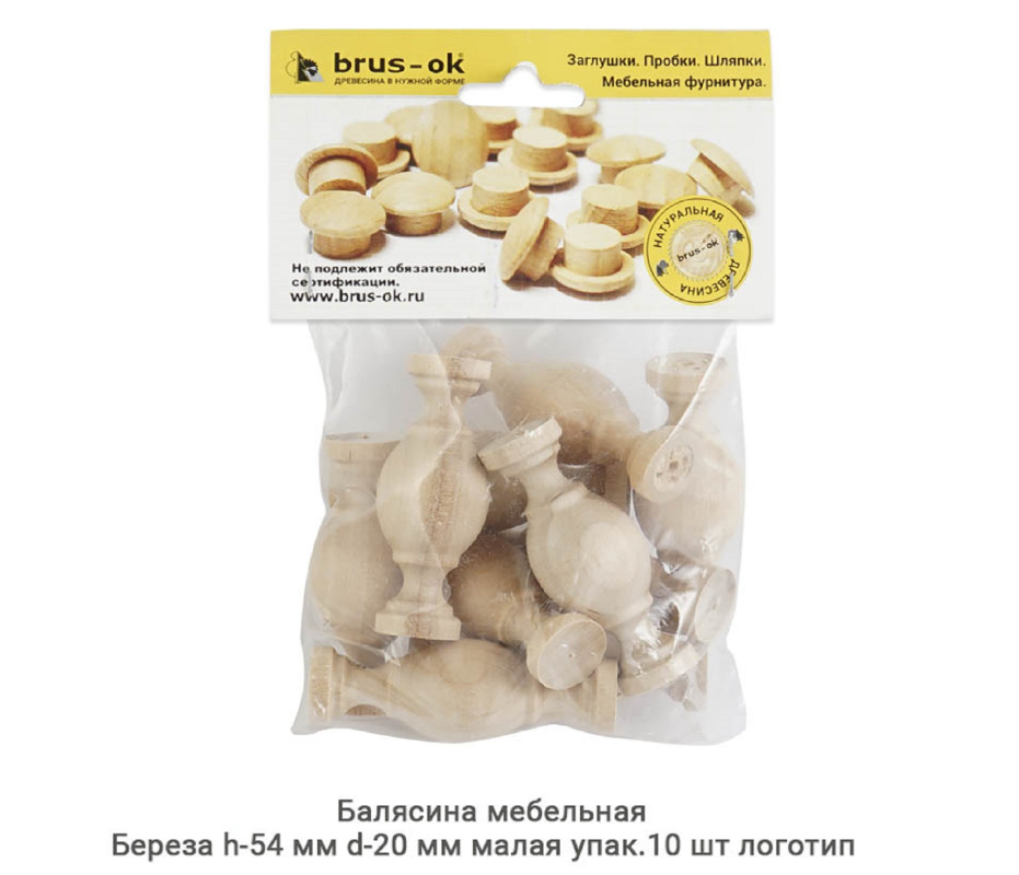 Балясина мебельная Береза / малая / h-54 мм Ø20 мм / упак.10 шт логотип (h-54 мм Ø20 мм)