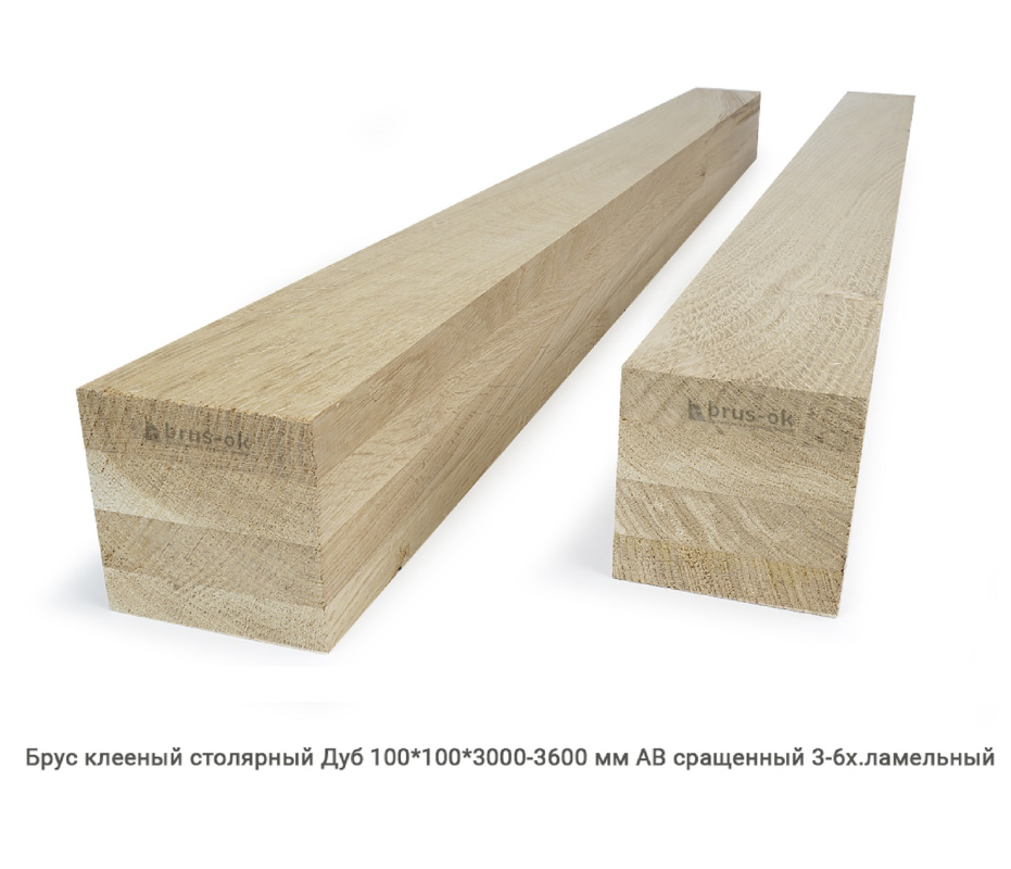 Брус клееный столярный Дуб (100 * 100 * 3000 мм АВ 3-6х.ламельный)