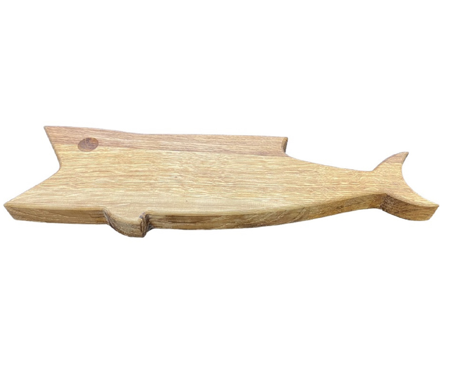Сервировочная доска «Рыба» / Дуб / масло-воск / 20 x 80 x 250 ммСервировочная доска ручной работы из массива дуба в форме рыбы. Покрыта пищевым масло-воском, безопасным для контакта с продуктами.
