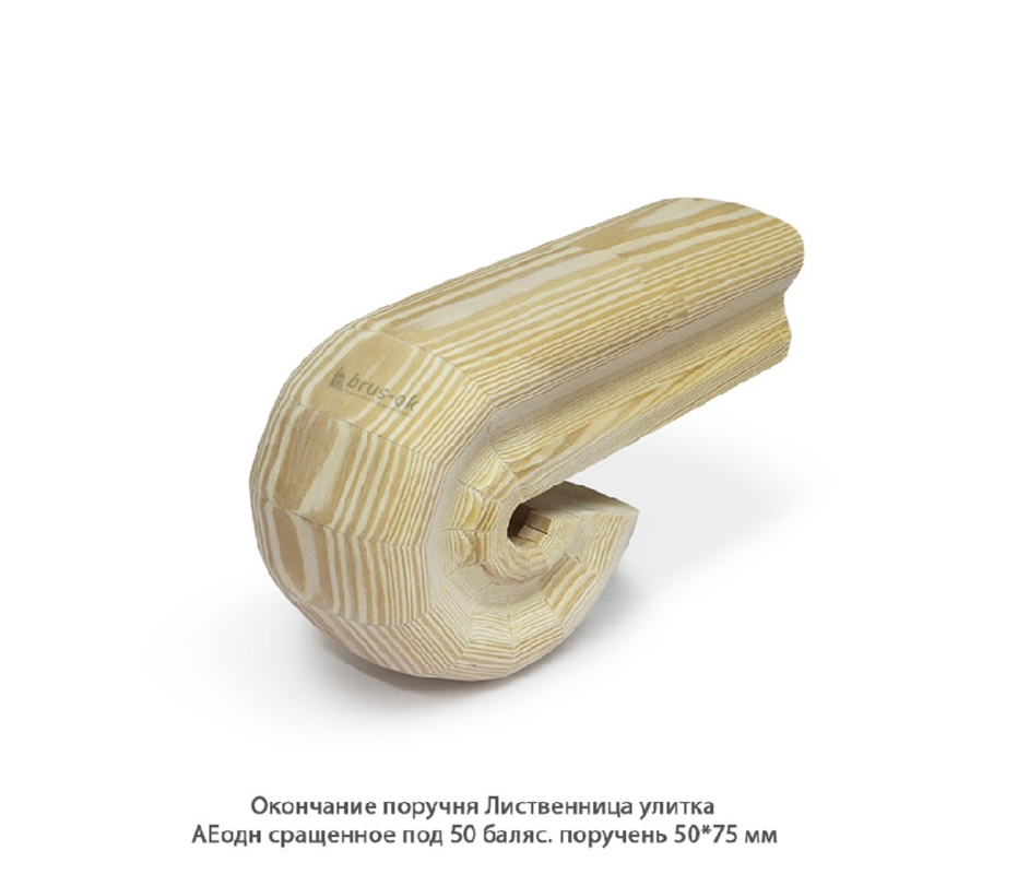 Окончание поручня улитка Лиственница АЕодн сращенное / под 50 балясину (50 * 75 * 150 мм)