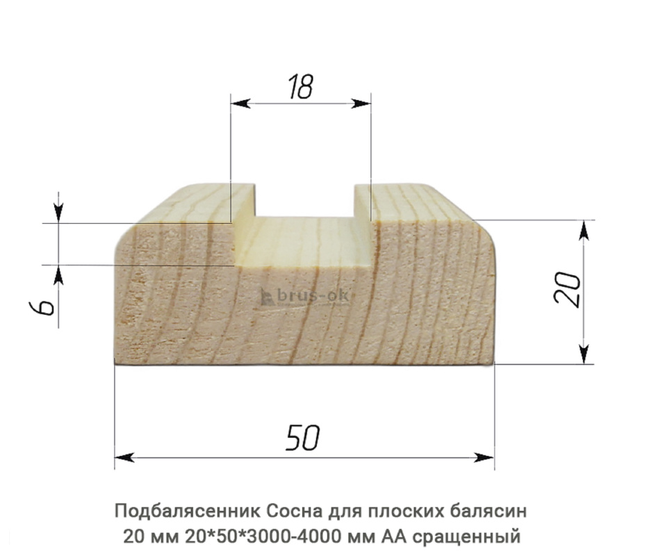 Подбалясенник Сосна АА сращенный / под 20 балясину (20 * 50 * 3 000 мм / упак.10 шт)