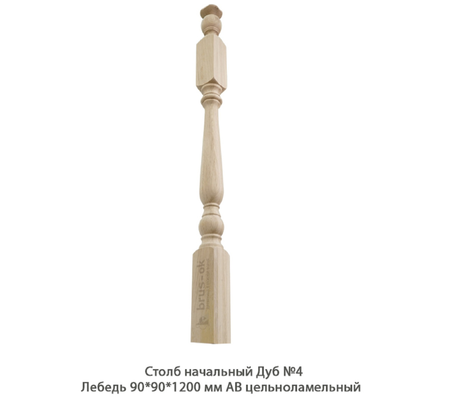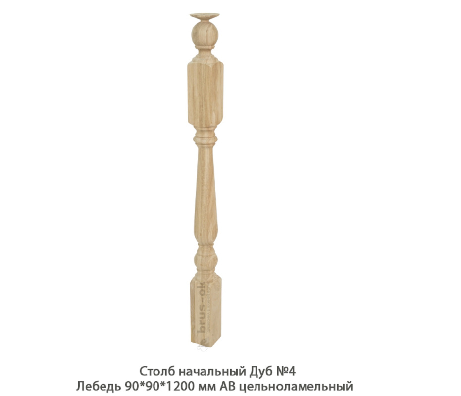 Столб начальный Дуб АВ сращенный / №4 Лебедь (90 * 90 * 1 200 мм / упак.2 шт)