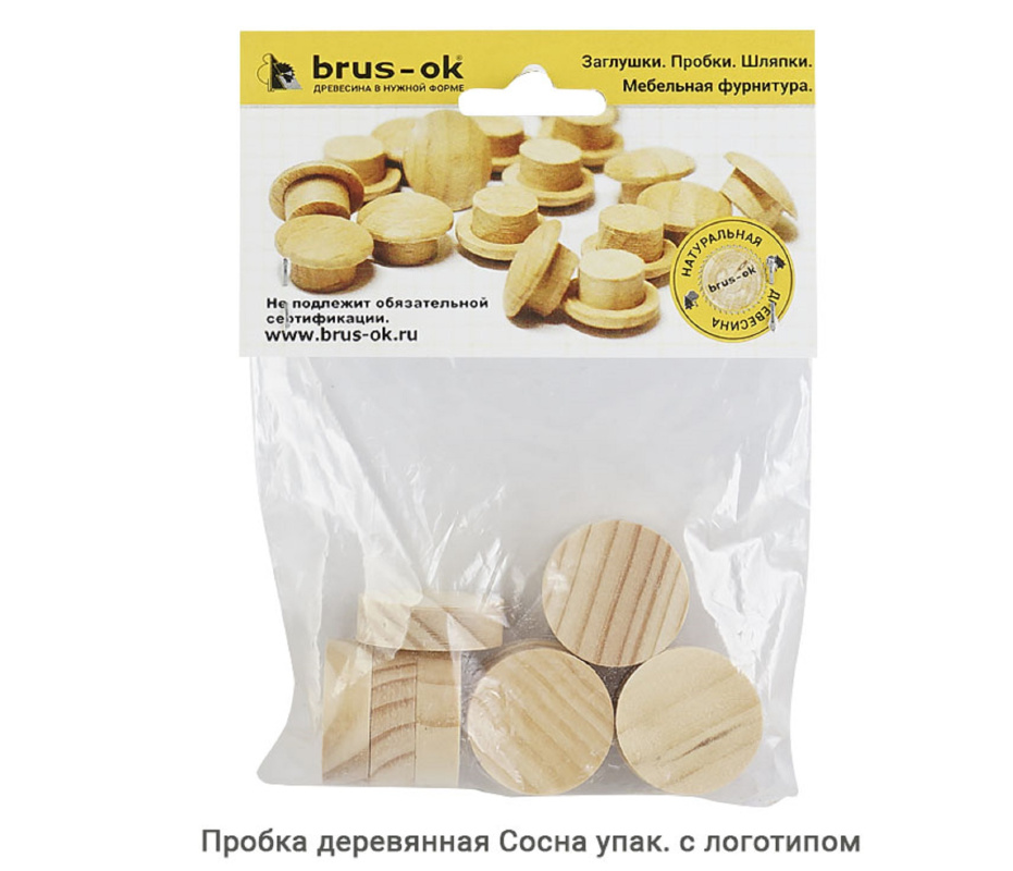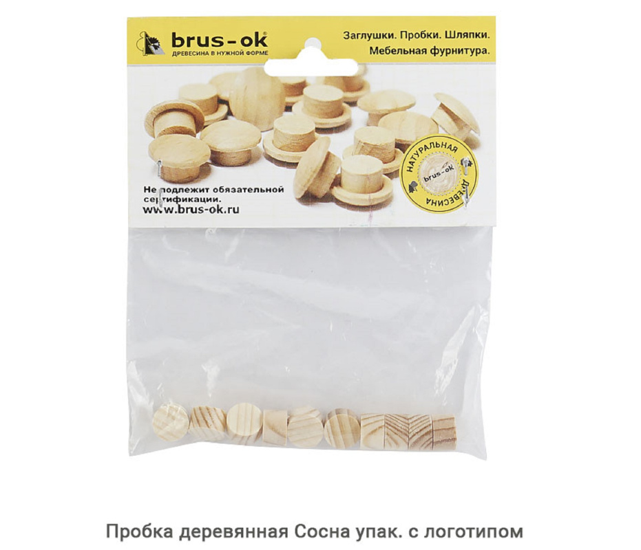 Пробка деревянная Сосна / упак.логотип (Ø 10 мм / упак.10 шт)