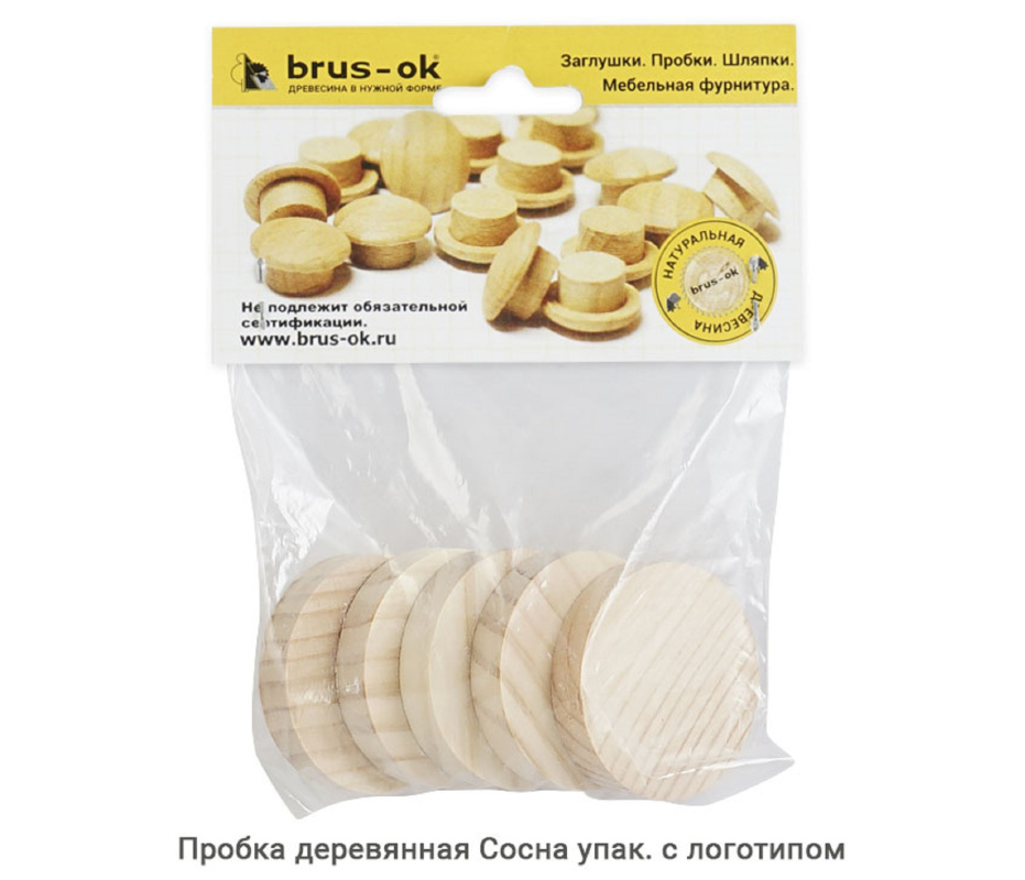 Пробка деревянная Сосна / упак.логотип (Ø 40 мм / упак.5 шт)