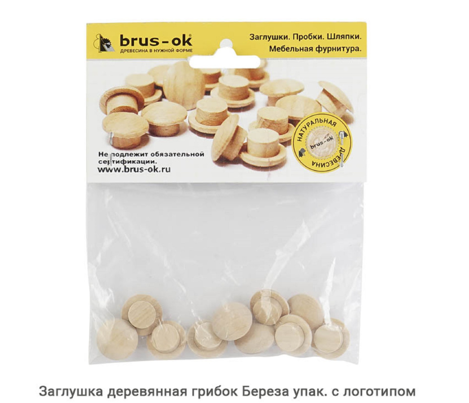 Заглушка деревянная грибок Береза / упак.логотип (Ø 10/15 мм / упак.10 шт)