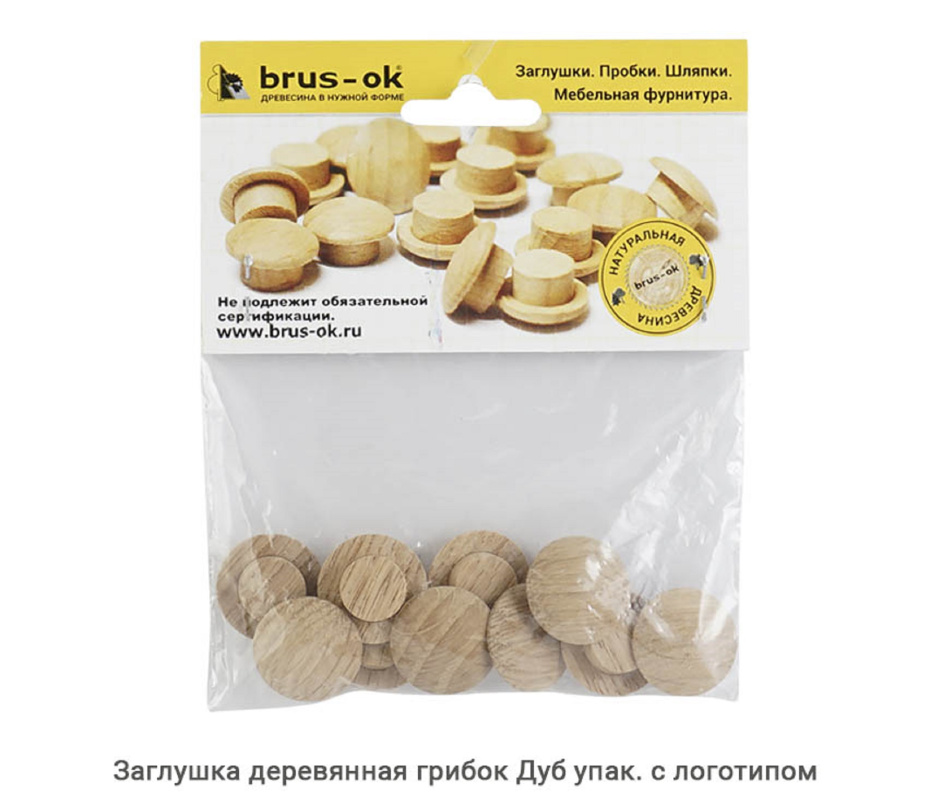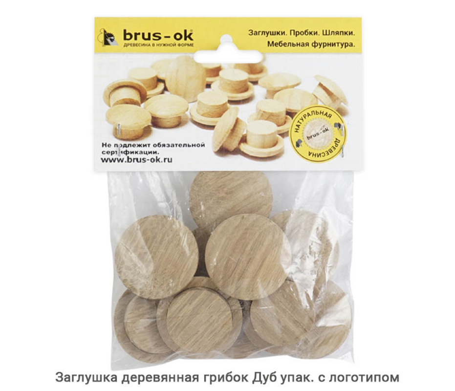 Заглушка деревянная грибок Дуб / упак.логотип (Ø 20/30 мм / упак.10 шт)