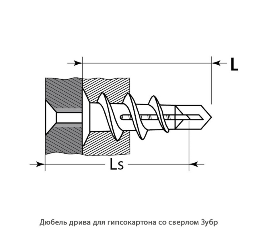 Дюбель дрива для гипсокартона со сверлом Зубр