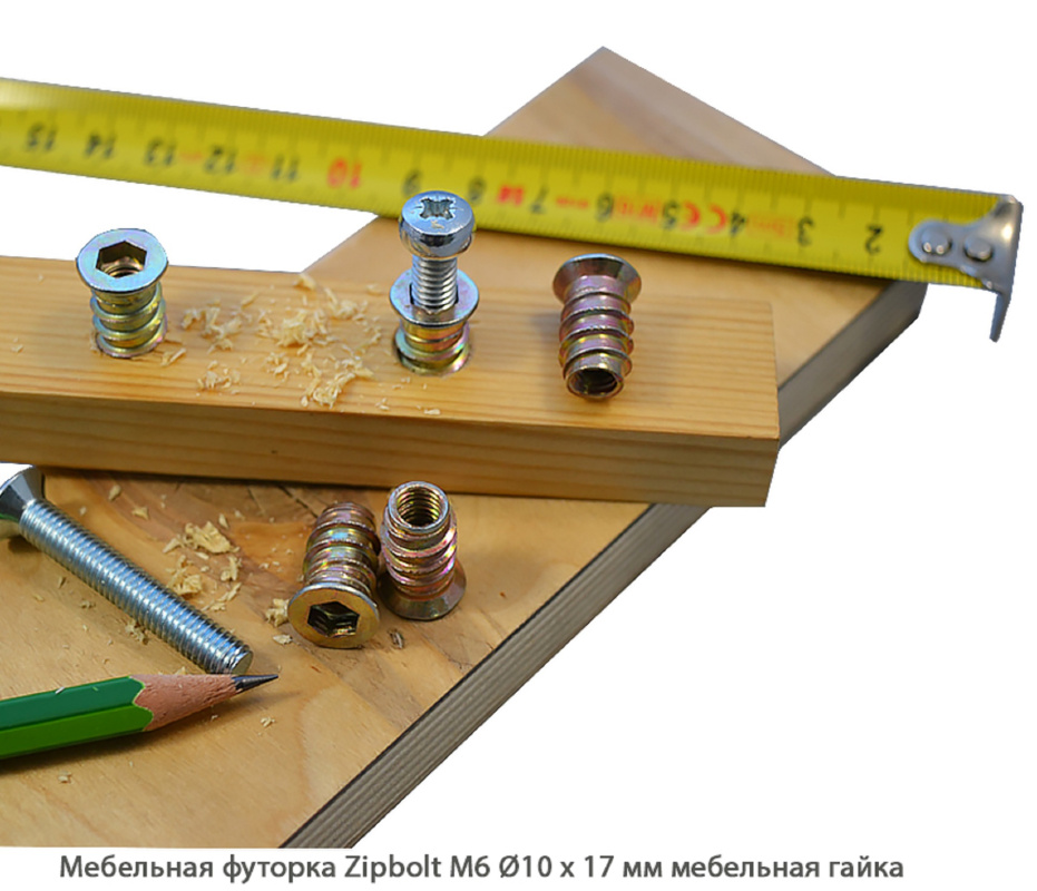 Мебельная футорка ZipBolt / М6 / Ø10 * 17 мм / мебельная гайка