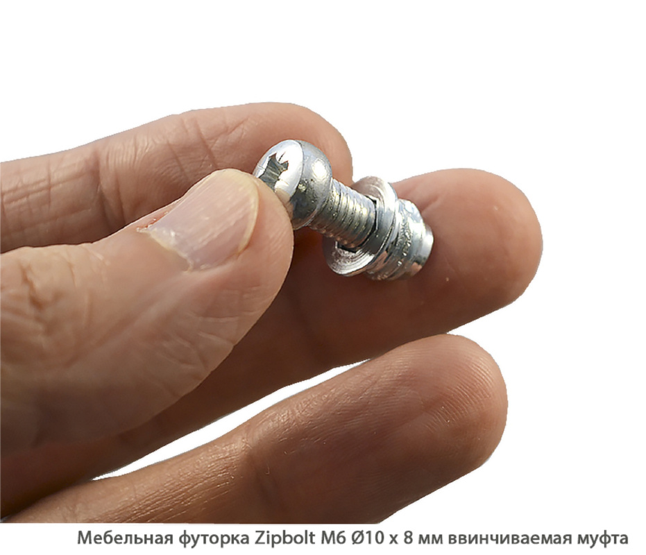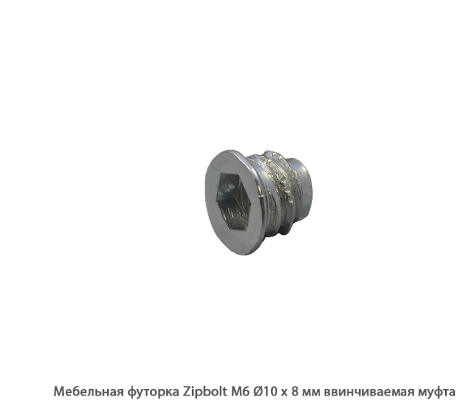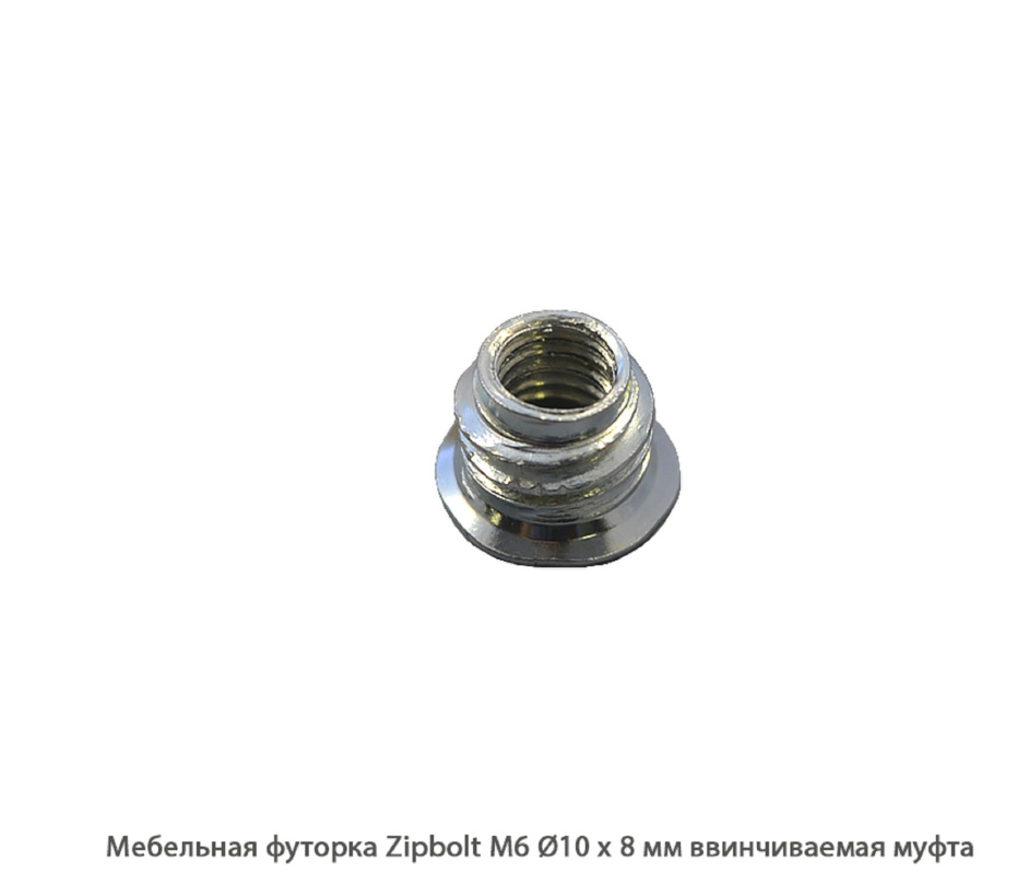 Мебельная футорка ZipBolt / М6 / Ø10 * 8 мм / резьбовая втулка (М6 / Ø10 * 8 мм)