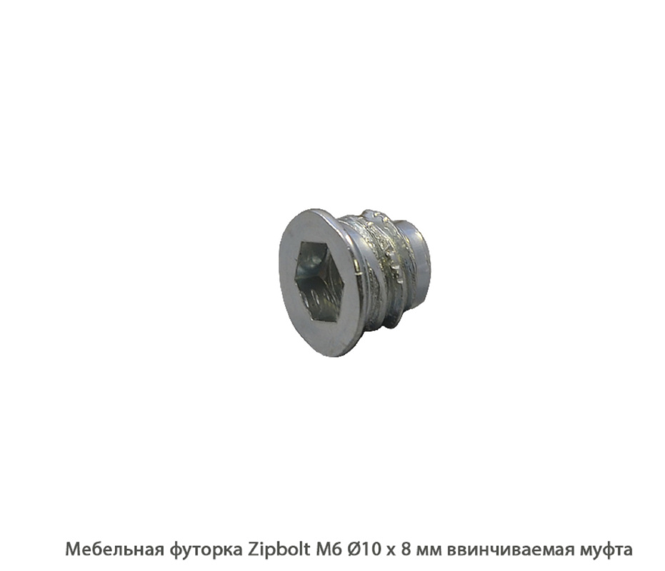 Мебельная футорка ZipBolt / М6 / Ø10 * 8 мм / резьбовая втулка