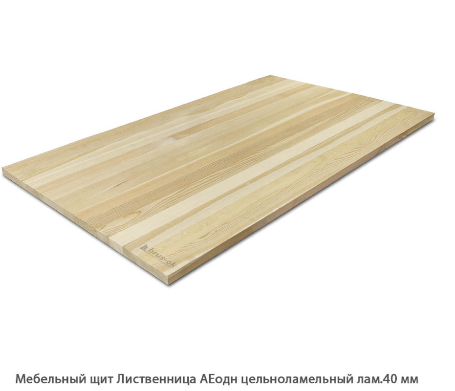 Мебельный щит из лиственницы цельноламельный. Это тип материала склеенный из цельных брусков шириной 35-45мм. Если необходимо добиться эстетического совершенства, то цельноламельные мебельные щиты - лучший выбор! Сорт АЕ одн означает, что только одна сторона является рабочей (без сучков и смолянных карманов), на обратной стороне могут быть и сучки и засмолы. Цельноламельный материал более дорогой по сравнению со сращенным и цена также зависит от длины щита. Это связано с тем, что подобрать сырье для изготовления длинного щита сложнее, чем для короткого.Преимущества лиственичных щитов - это стойкость к гниению, так как смолы лиственницы обладают уникальными свойствами.