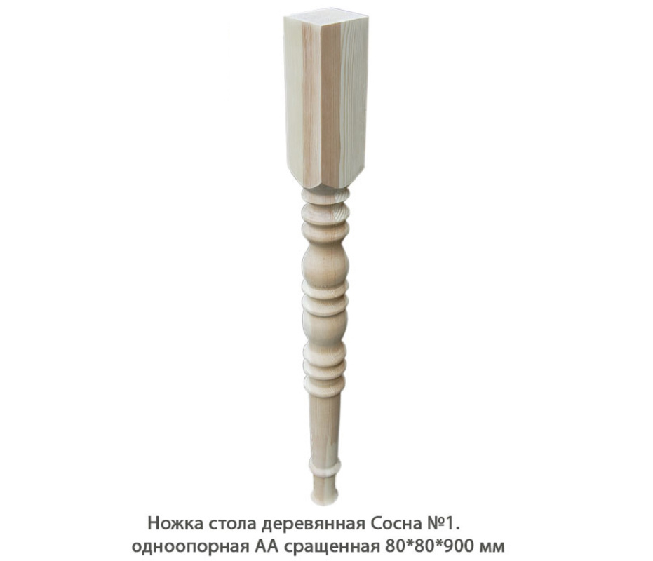 Ножка стола деревянная Сосна №1 АА сращенная / одноопорная (80 * 80 * 900 мм)