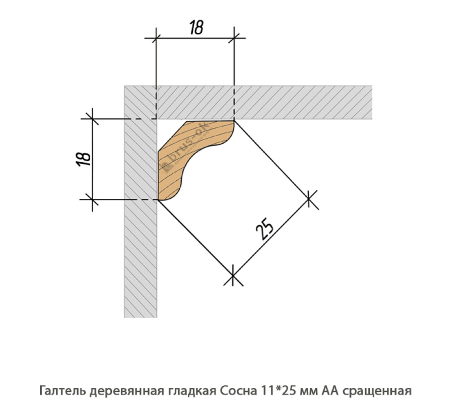 Галтель деревянная Сосна АА сращенная / гладкая (11 * 25 * 3 000 мм / упак.30 шт)