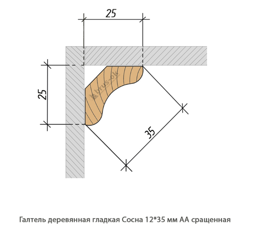Галтель деревянная Сосна АА сращенная / гладкая (12 * 35 * 3 000 мм / упак.20 шт)