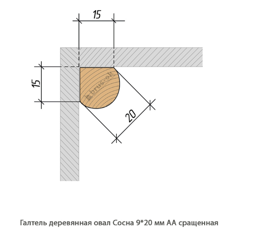 Галтель деревянная Сосна АА сращенная / овал (9 * 20 * 3 000 мм / упак.30 шт)