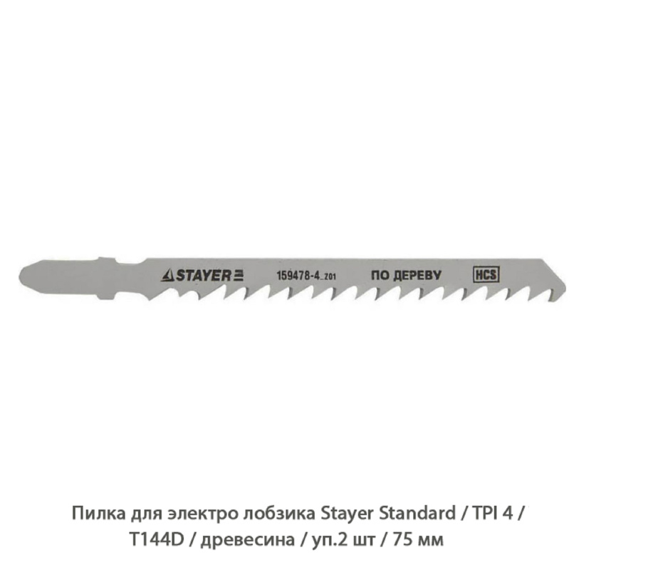 Пилка для электролобзика Stayer Standard / TPI4 / T144D (75 мм / упак. 2 шт)