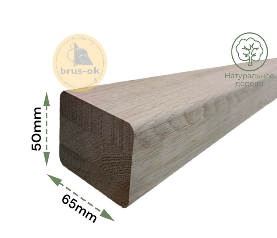 Поручень деревянный ПРЯМОУГОЛЬНЫЙ Дуб ВВ сращенный / без паза (42 * 65 * 3 000 мм)