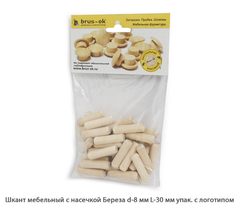 Шканты мебельные с насечкой Береза цельн.массив / упак.логотип