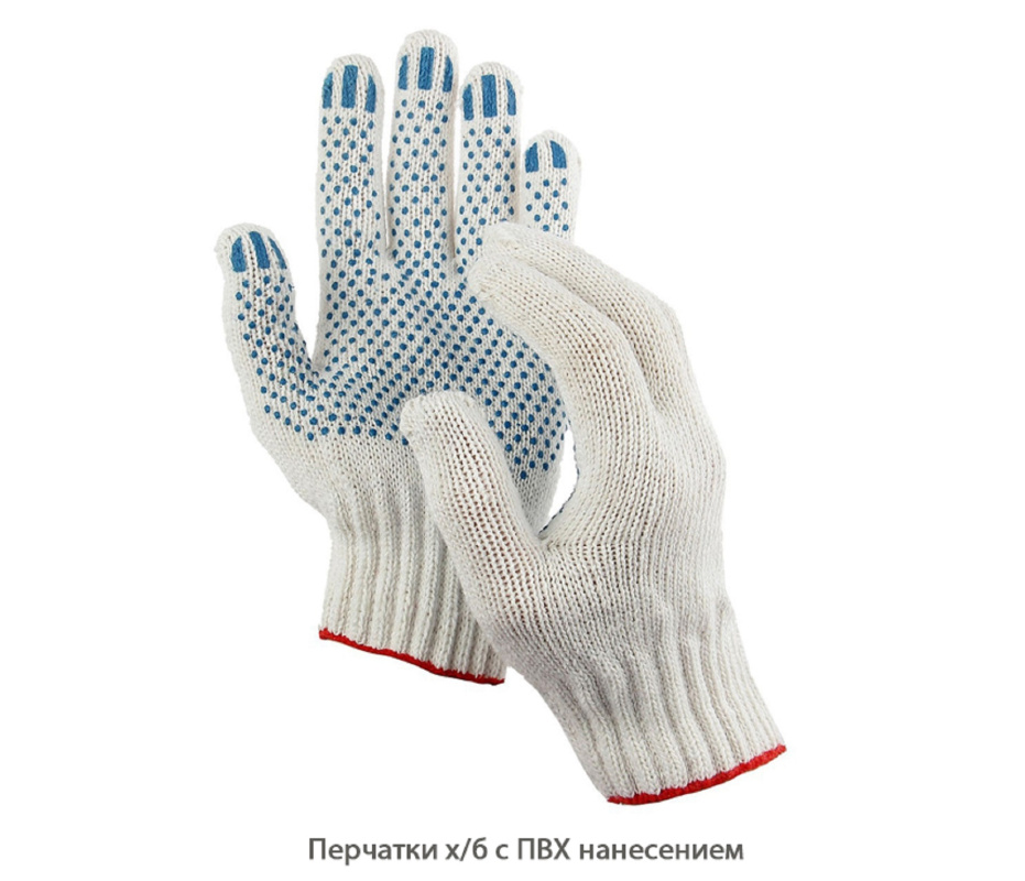 Перчатки х/б с ПВХ нанесением точки / белые (5 ниток / универсальный)
