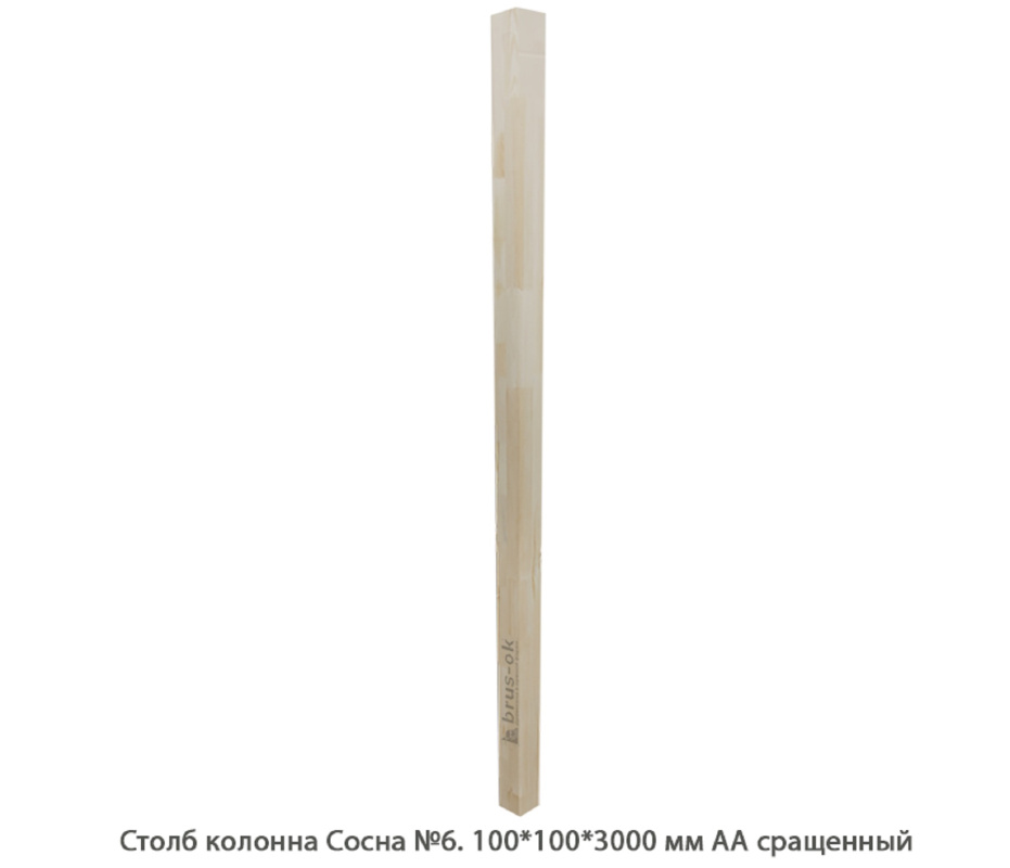 Столб колонна Сосна АА сращенный / №6 (100 * 100 * 3 000 мм)