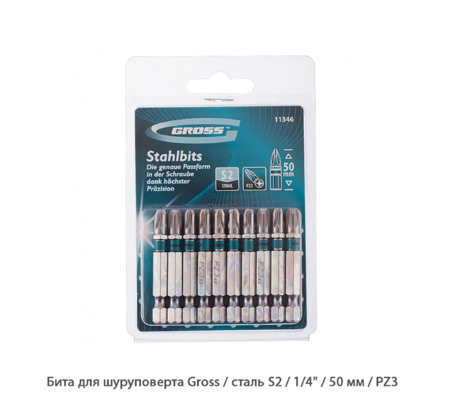 Бита для шуруповерта Gross / PZ3 (50 мм / упак. 10 шт)