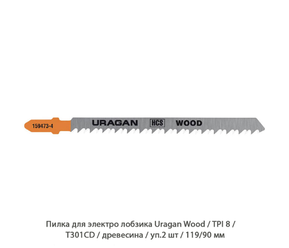 Пилка для электролобзика Uragan Wood / TPI8 / T301CD (90 мм / упак. 2 шт)