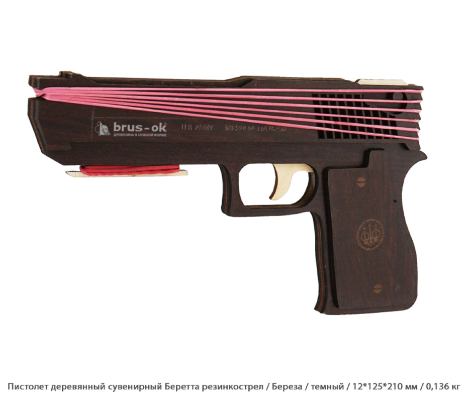 Пистолет деревянный сувенирный Беретта резинкострел Береза / темный / 12 * 125 * 210 мм / 0,14 кг (0,14 кг / 12 * 125 * 210 мм)