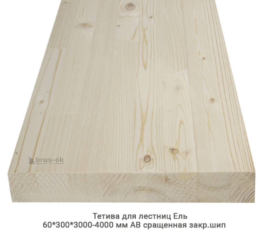 Тетива для лестниц Ель АВ сращенная закр.шип (50 * 300 * 4 000 мм)