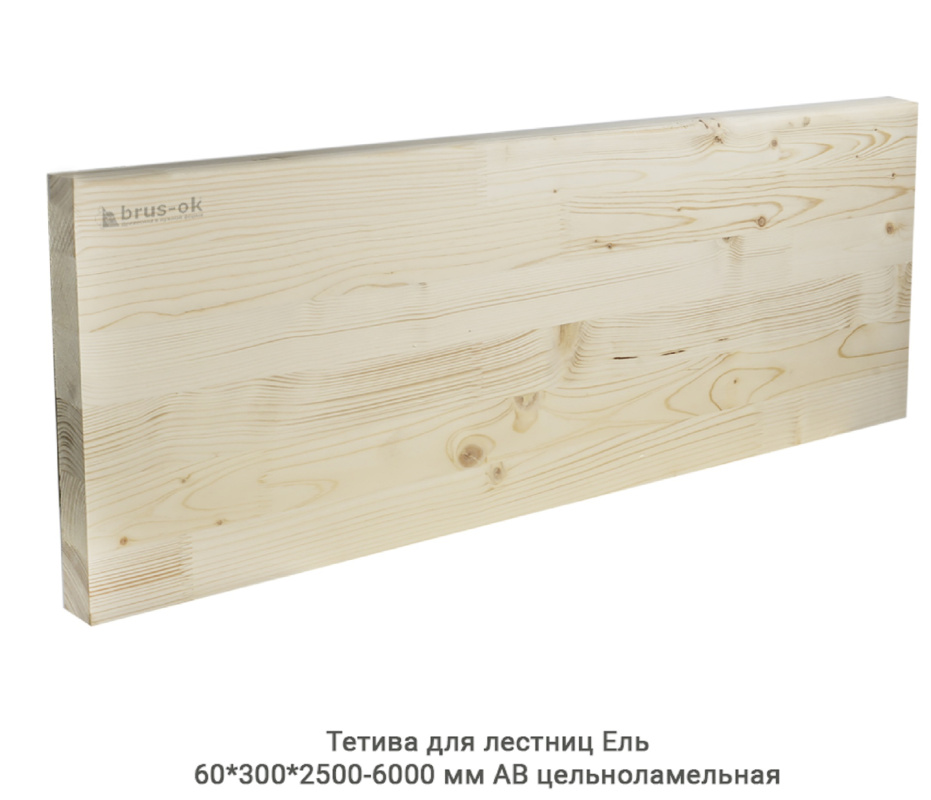 Тетива для лестниц Ель АВ цельноламельная (60 * 300 * 3 000 мм)