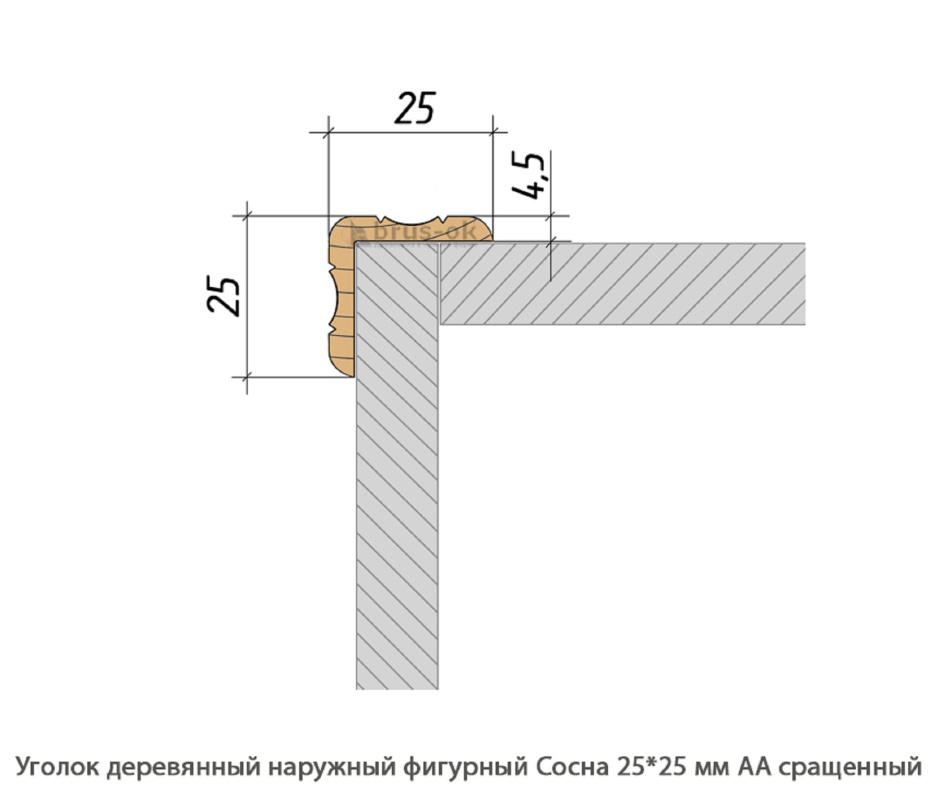 Уголок деревянный наружный равносторонний Сосна АА сращенная / фигурный (25 * 25 * 3 000 мм / упак.30 шт)