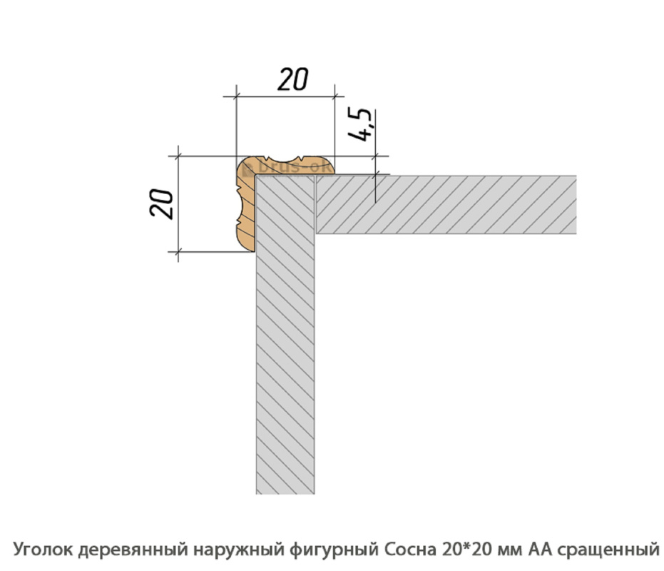Уголок деревянный наружный равносторонний Сосна АА сращенная / фигурный (20 * 20 * 3 000 мм / упак.50 шт)