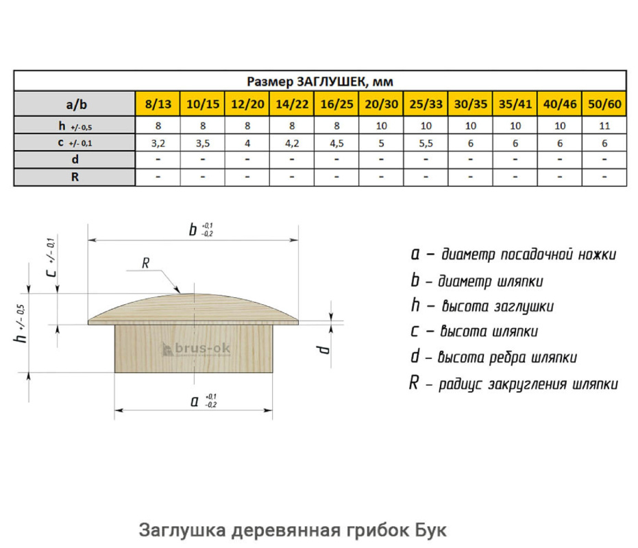 Заглушка деревянная грибок Бук (Ø 50/60 мм / упак.50 шт)