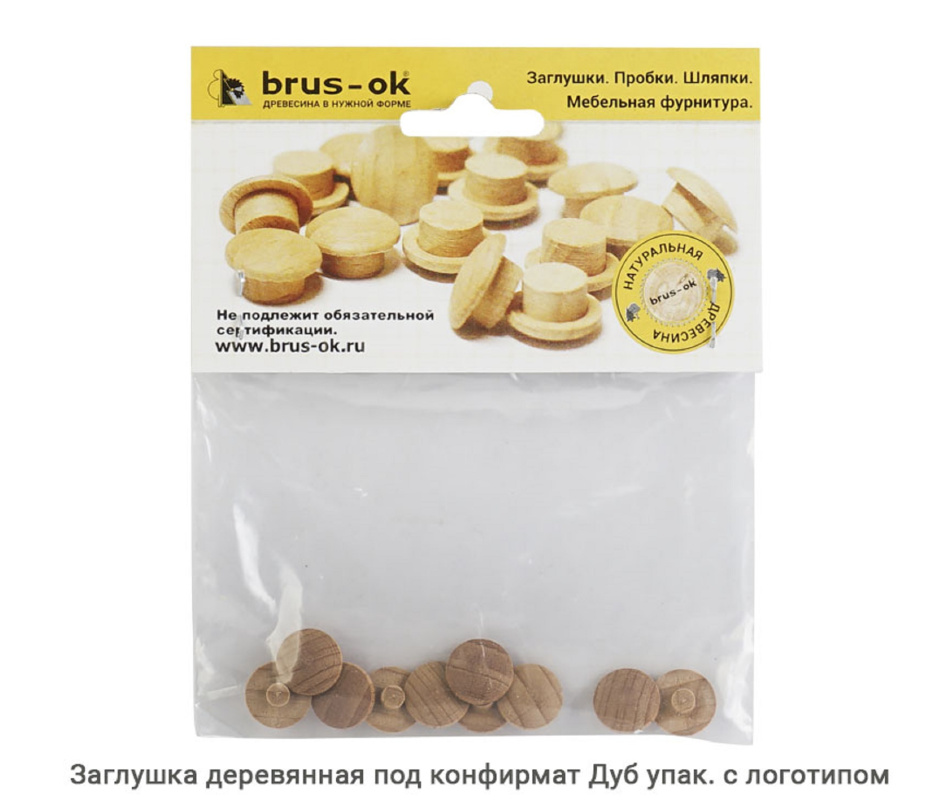 Заглушка деревянная под конфирмат Дуб / упак.логотип