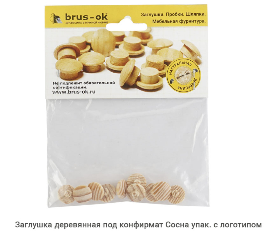 Заглушка деревянная под конфирмат Сосна / упак.логотип
